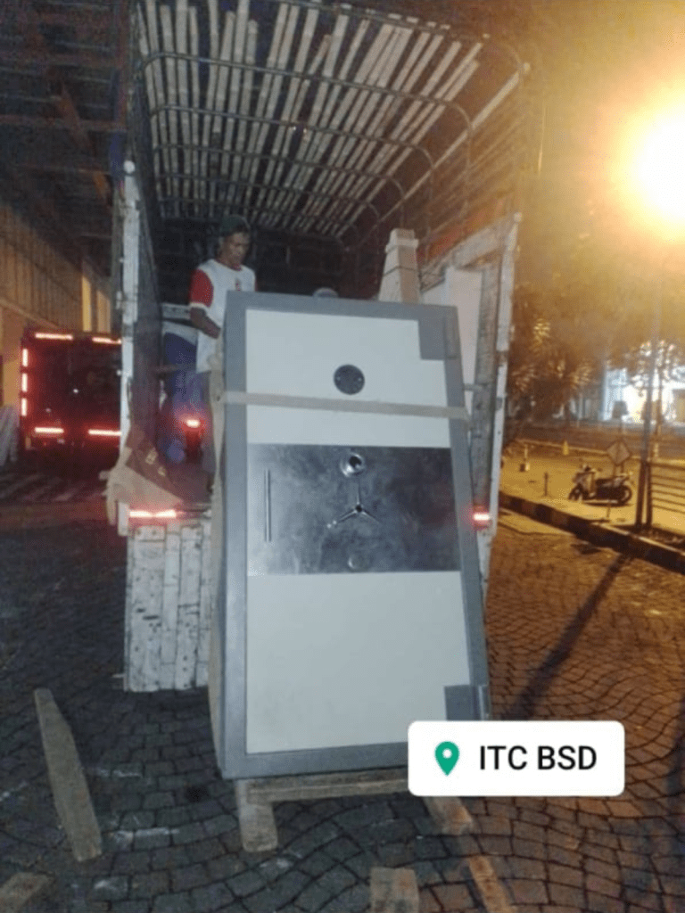 Proses pindah brankas dilakukan dengan standar keamanan tinggi oleh tim berpengalaman.
